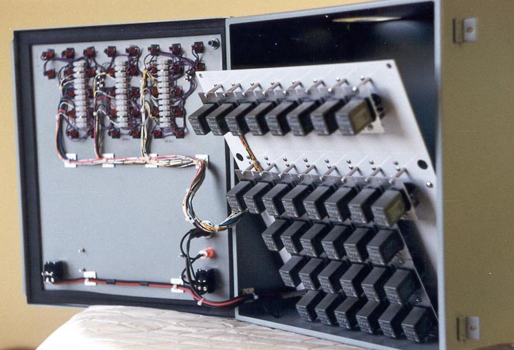 controlled a set of signal lines and the LEDs showed the status of each line. As one computer was always the back-up for the other one, system maintenance was simply a case of flipping one toggle switch to move all the test equipment from the primary to secondary system.